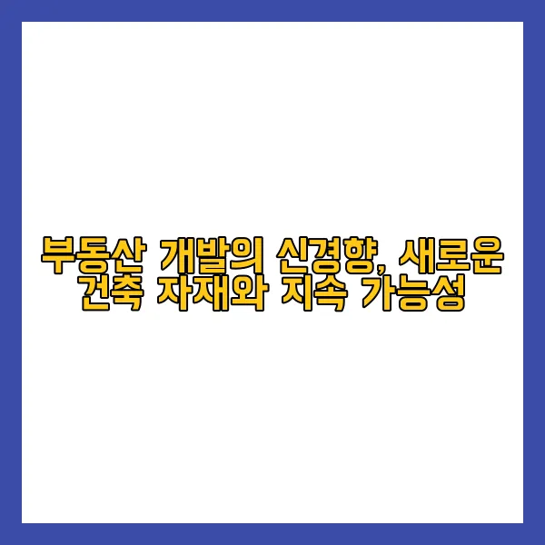 부동산 개발의 새로운 경향은 최신 건축 자재와 지속 가능성의 결합으로 더욱 뚜렷해지고 있습니다. 혁신적인 자재들은 건축 과정에서의 효율성을 높이며, 환경에 미치는 영향을 최소화합니다. 이러한 변화는 더 이상 선택이 아닌 필수 요소로 자리잡고 있습니다. 지속 가능한 개발 원칙을 실천하는 것은 주거 공간을 넘어 시장 전반에 긍정적인 영향을 미치기 마련입니다. 결국, 친환경 건축을 향한 우리의 노력은 미래 세대에 보다 살기 좋은 지구를 물려주는 중요한 첫걸음입니다. 이러한 모든 변화는 우리 모두의 보다 나은 내일을 위한 밑바탕을 구축하고 있습니다.